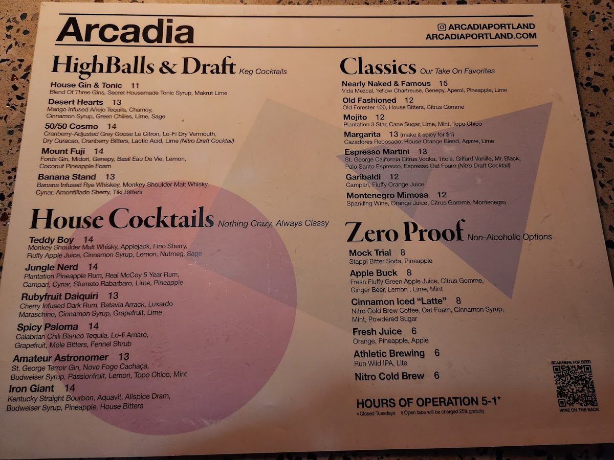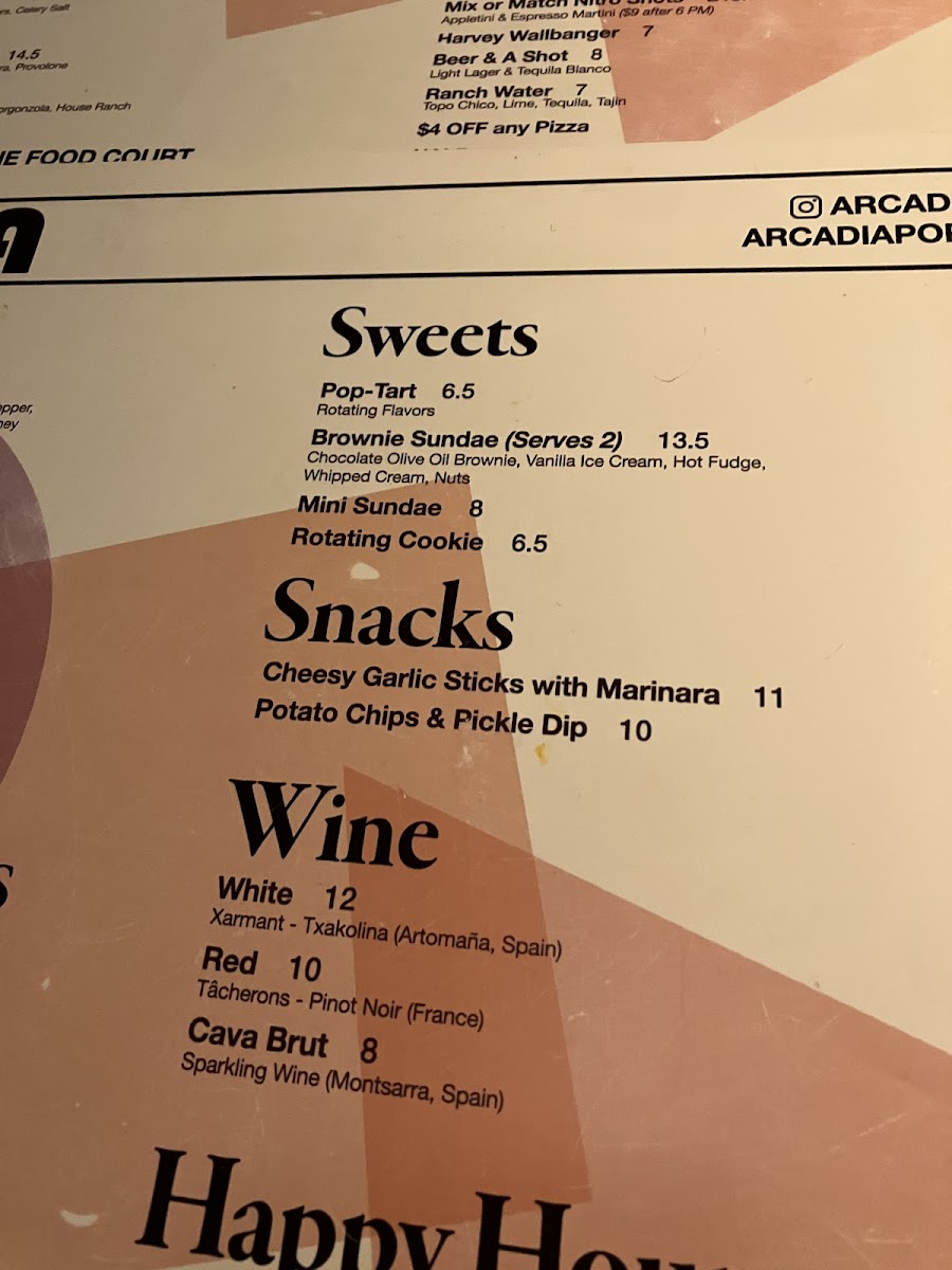 Arcadia - Portland, Me Menu